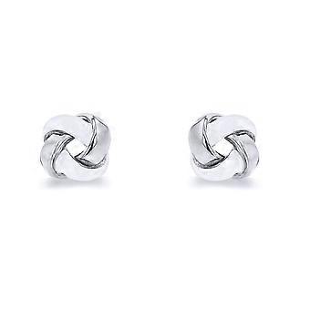 Jewelco London Sterling Silver White Enamel Quadruple Love Knot Stud Earrings, 8mm