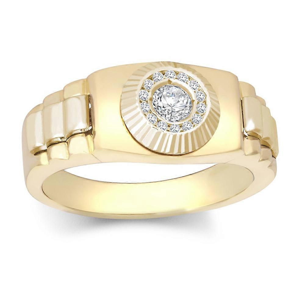 Jewelco London Unisex 9ct Gold White Cubic Zirconia Fluted Sunburst Bezel Watch Strap Cluster Solitaire Ring