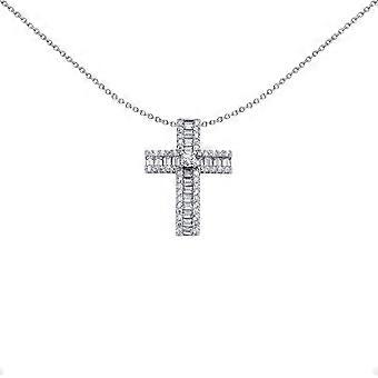 Jewelco London Unisex Rhodium Plated Sterling Silver Baguette Cubic Zirconia Art Deco Shimmering Solitaire Cross Pendant