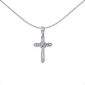 Jewelco London Unisex Rhodium Plated Sterling Silver Cubic Zirconia 3D Isometric Art Deco Prism Kiss Bandolier Cross Pendant