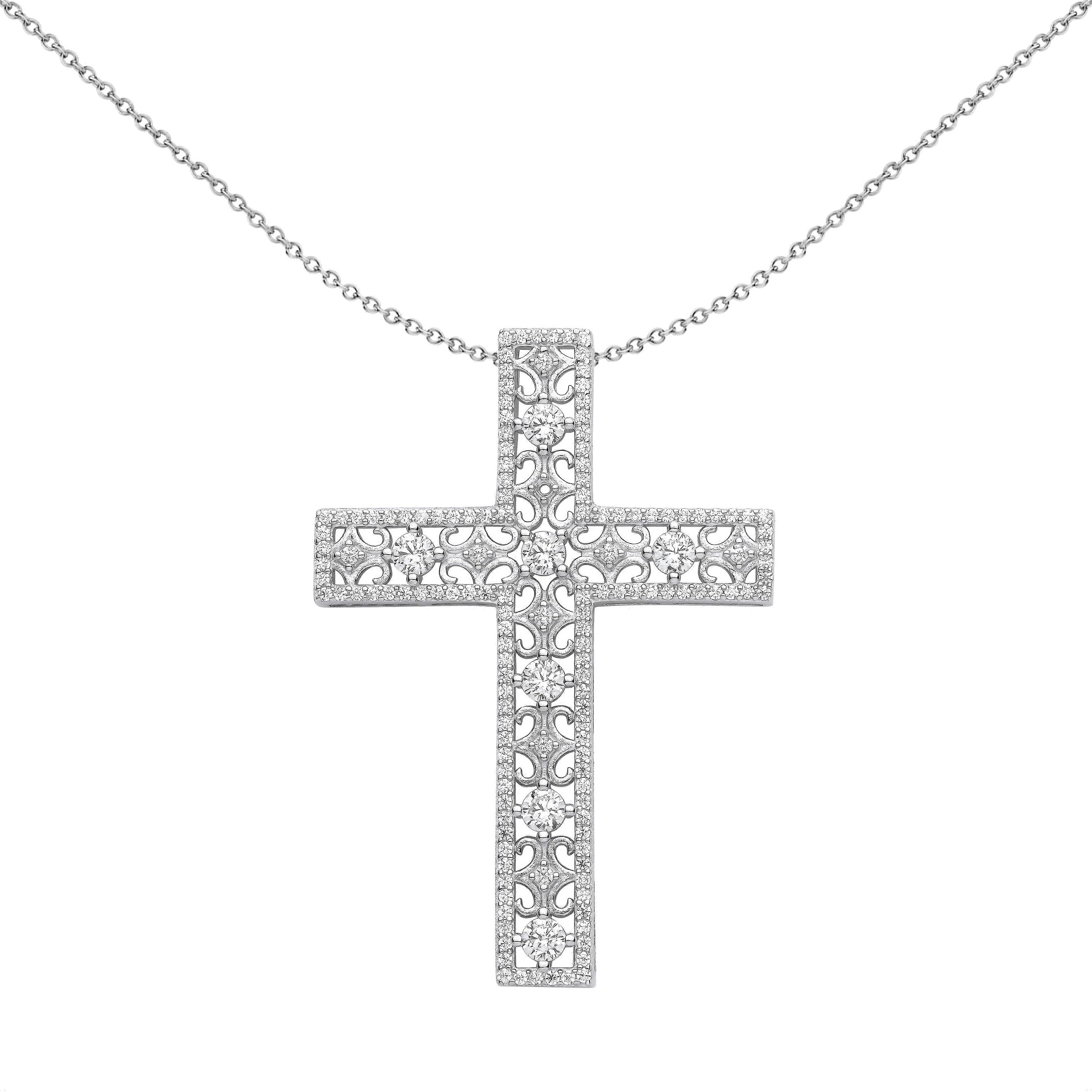 Jewelco London Unisex Rhodium Plated Sterling Silver CZ Filigree Lattice Outline Cross Pendant Necklace 18 inch