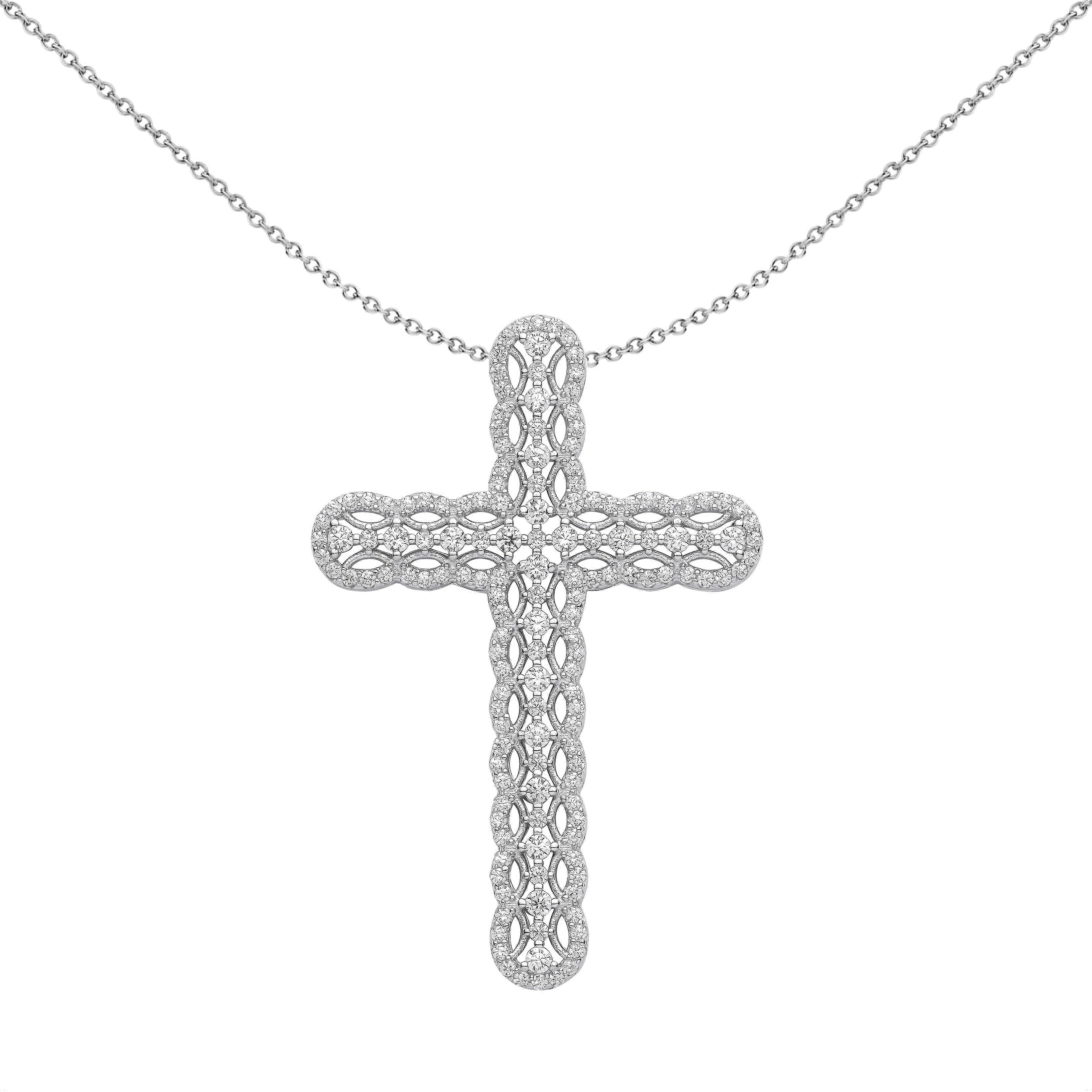 Jewelco London presents this piece from its latest collection of jewellery, a unisex cross pendant necklace made of rhodium plated sterling silver in a scallop edge tennis design, set with white round cubic zirconia gemstones. Approx dimensions: 18 inch | Includes a Rhodium-Plated Sterling Silver chain, which can be adjusted to 16, 18 or 20 inches. Height: 45mm Width: 30.4mm Weight: 5.2g GEMSTONE: Cubic Zirconia, Round, White SKU: GVX074