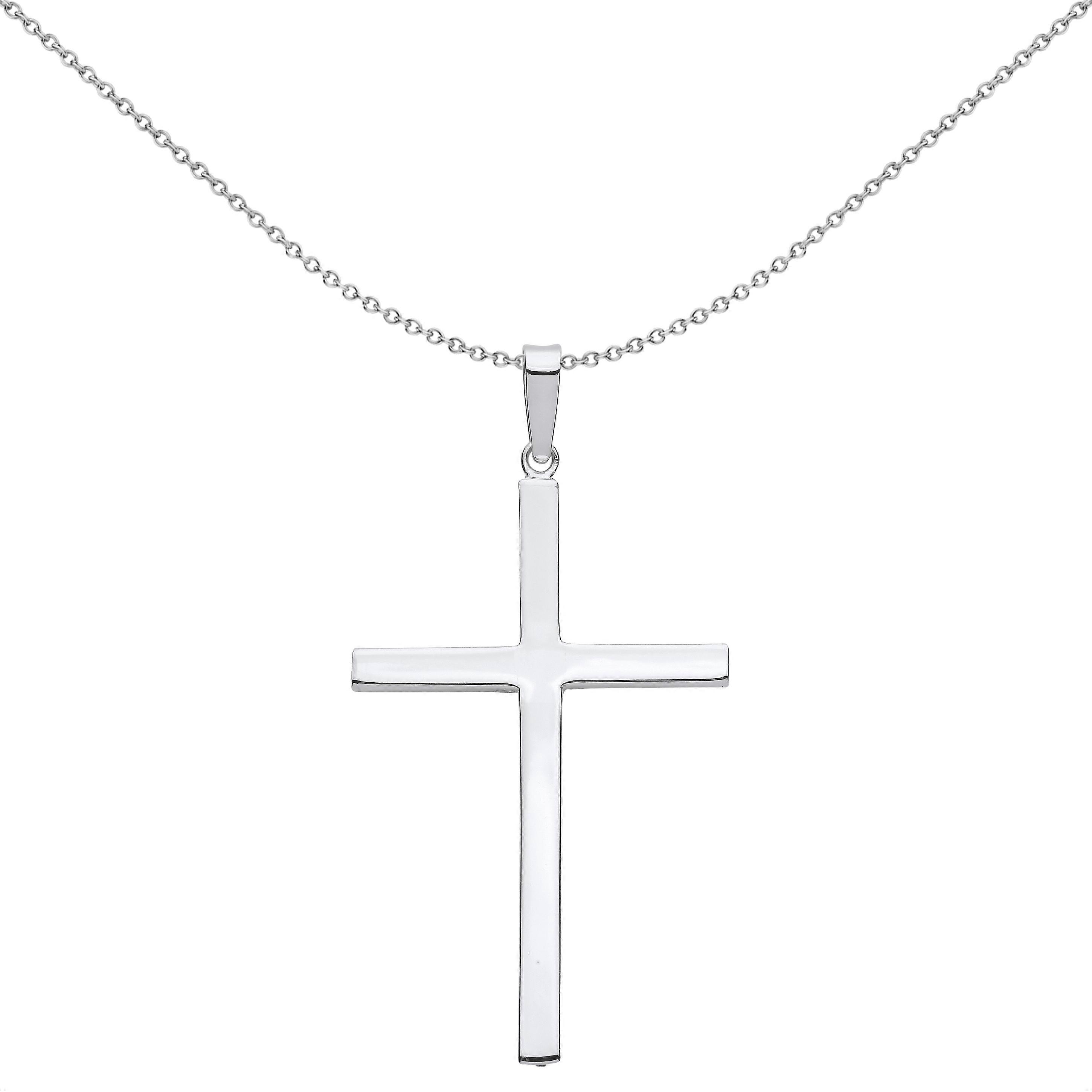 Jewelco London Unisex Rhodium Plated Sterling Silver Minimalist Square Latin Cross Pendant Necklace 18 inch