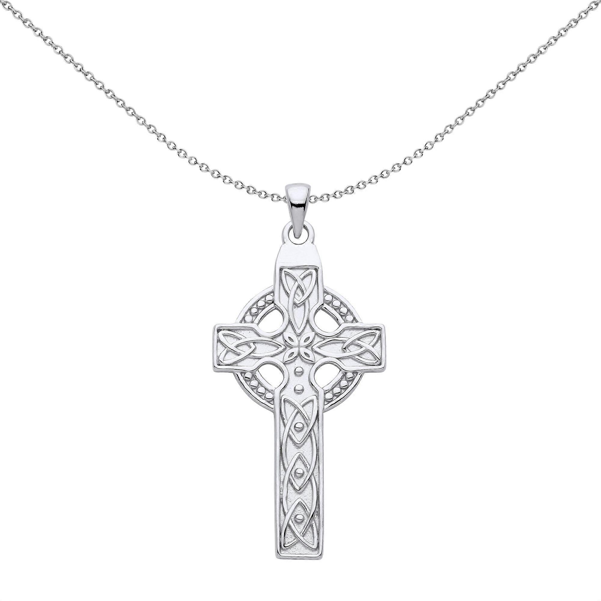 Jewelco London Unisex Rhodium Plated Sterling Silver Trinity Knot Beaded Celtic Cross Pendant Necklace 18 inch