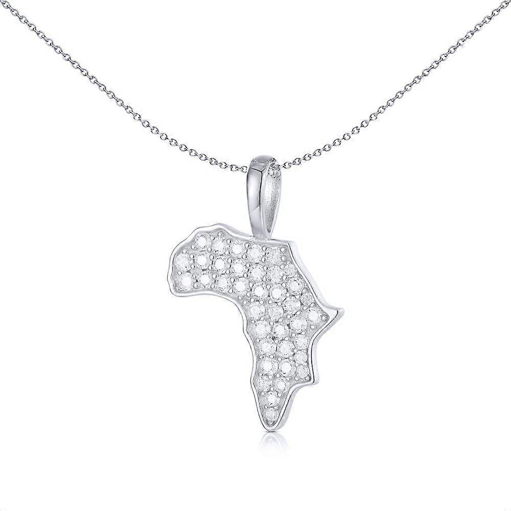 Jewelco London Unisex Rhodium Silver Round CZ Great Continent of Africa Charm Pendant