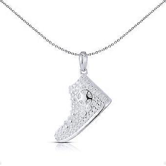 Jewelco London Unisex Rhodium Silver Round CZ High Top Trainer Charm Pendant