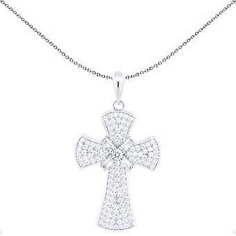 Jewelco London Unisex Rhodium Silver White Baguette CZ Encrusted Byzantine Cross Pendant