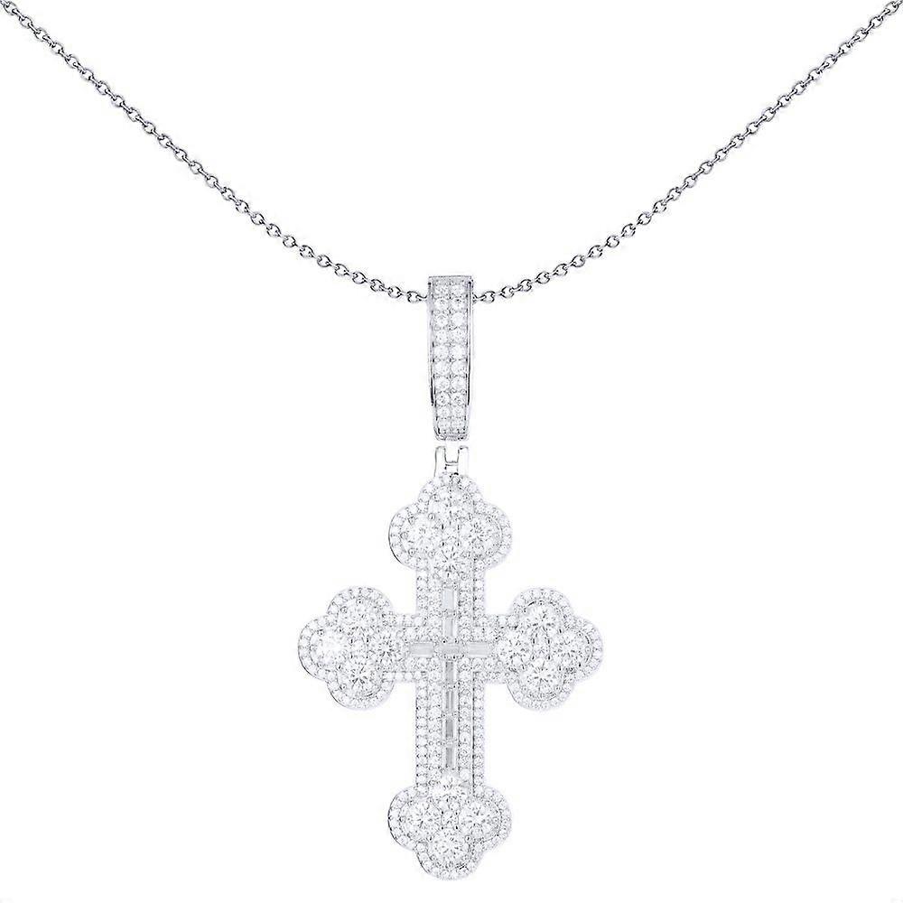 Jewelco London Unisex Rhodium Silver White Baguette CZ Encrusted Greek Baptismal Cross Pendant ½oz