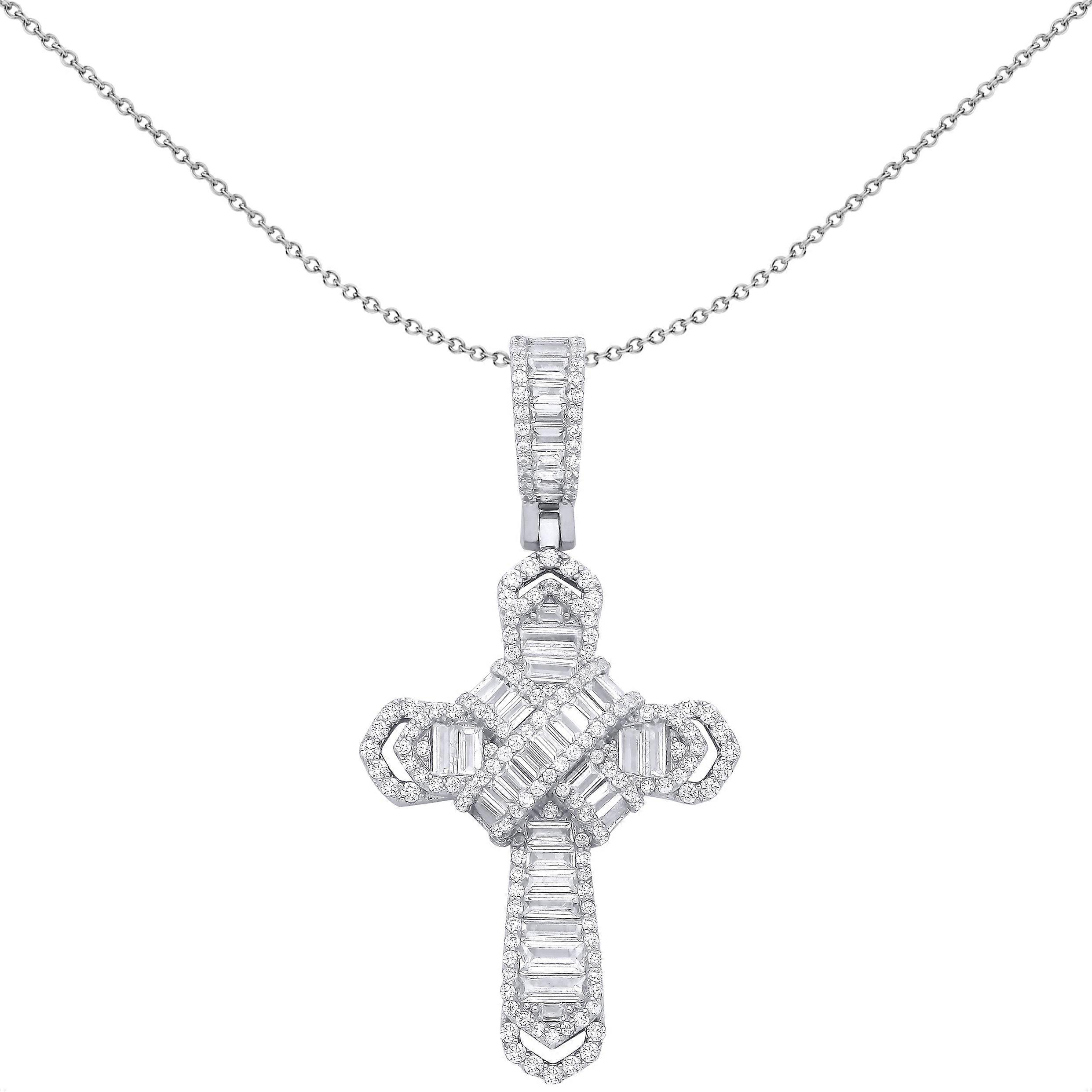 Jewelco London Unisex Rhodium Sterling Silver Baguette CZ Criss Cross Bandolier Chevron Cross Pendant Necklace