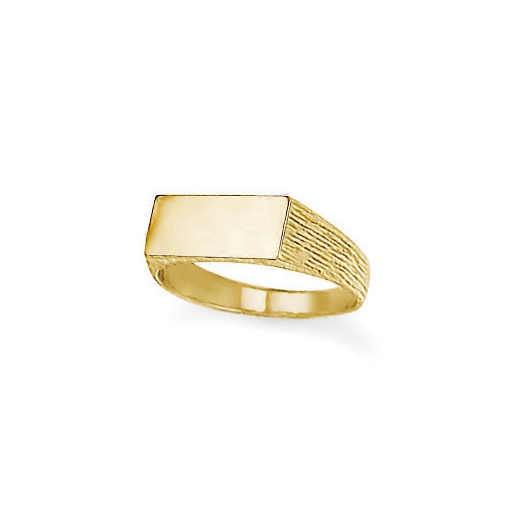 Jewelco London Unisex Solid 9ct Gold Engravable Barked Initial Blank Plate Signet Ring