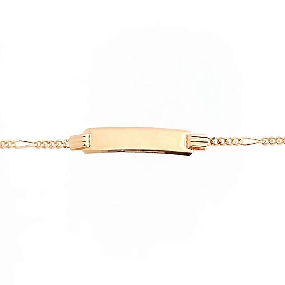 Jewelco London Unisex Solid 9ct Yellow Gold 5 Plus 1 Figaro 1.8mm Gauge Identity ID Bracelet 6" This classic solid 9ct gold ID bracelet will make a perfect gift. Always contemporary with a generous ID plate to inscribe your message. Ideal for daily wear. Length: 150mm Gauge: 1.8mm Weight: 1.9g Additional Info: 5mm x 21mm ID Engravable Bar SKU: JID037-6.5