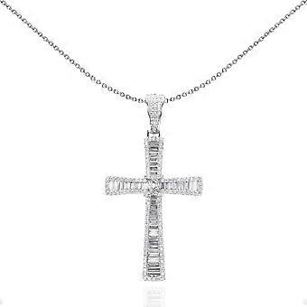 Jewelco London Unisex Sterling Silver Baguette CZ Byzantine Knot Shimmering Cross Pendant Necklace 18 inch