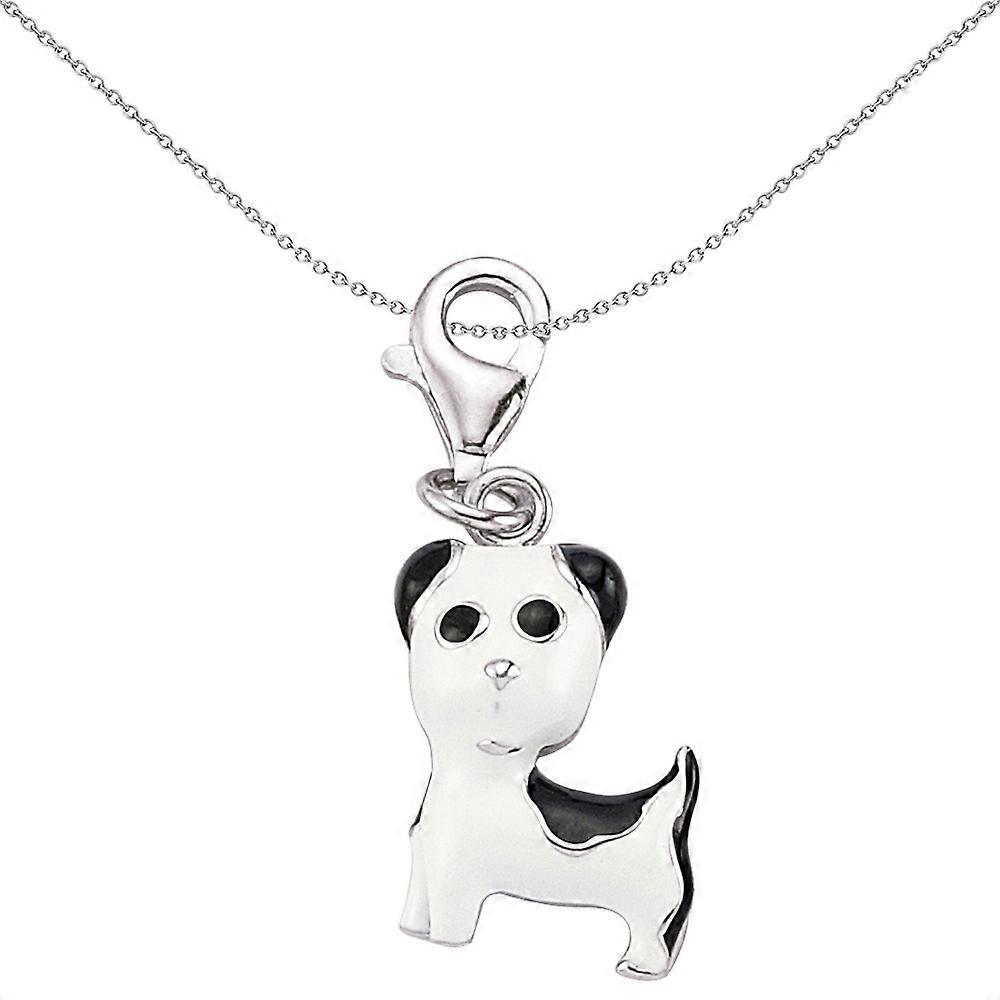 Jewelco London Unisex Sterling Silver Black White Enamel Puppy Lobster Clasp Link Charm