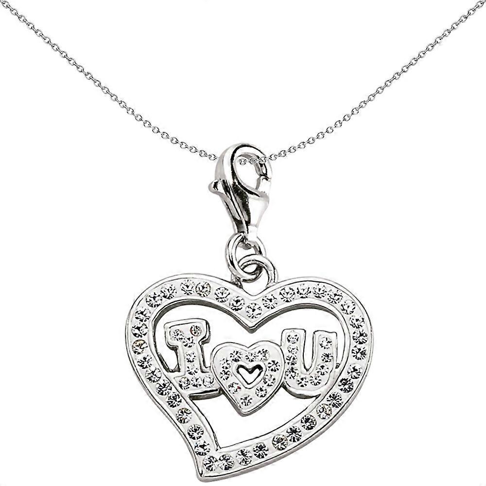 Jewelco London Unisex Sterling Silver Crystal I♡U Love Heart Lobster Clasp Link Charm