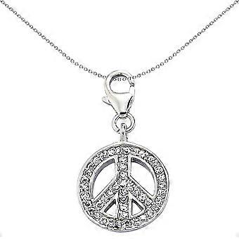 Jewelco London Unisex Sterling Silver Cubic Zirconia Peace Symbol Lobster Clasp Link Charm