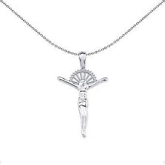 Jewelco London Unisex Sterling Silver Cubic Zirconia Sun Rays Crucifix Cross Pendant Necklace 18 inch
