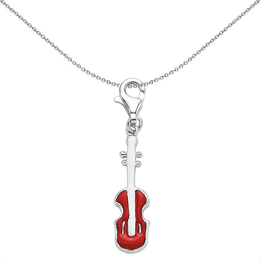 Jewelco London Unisex Sterling Silver Red Enamel Guitar Lobster Clasp Link Charm