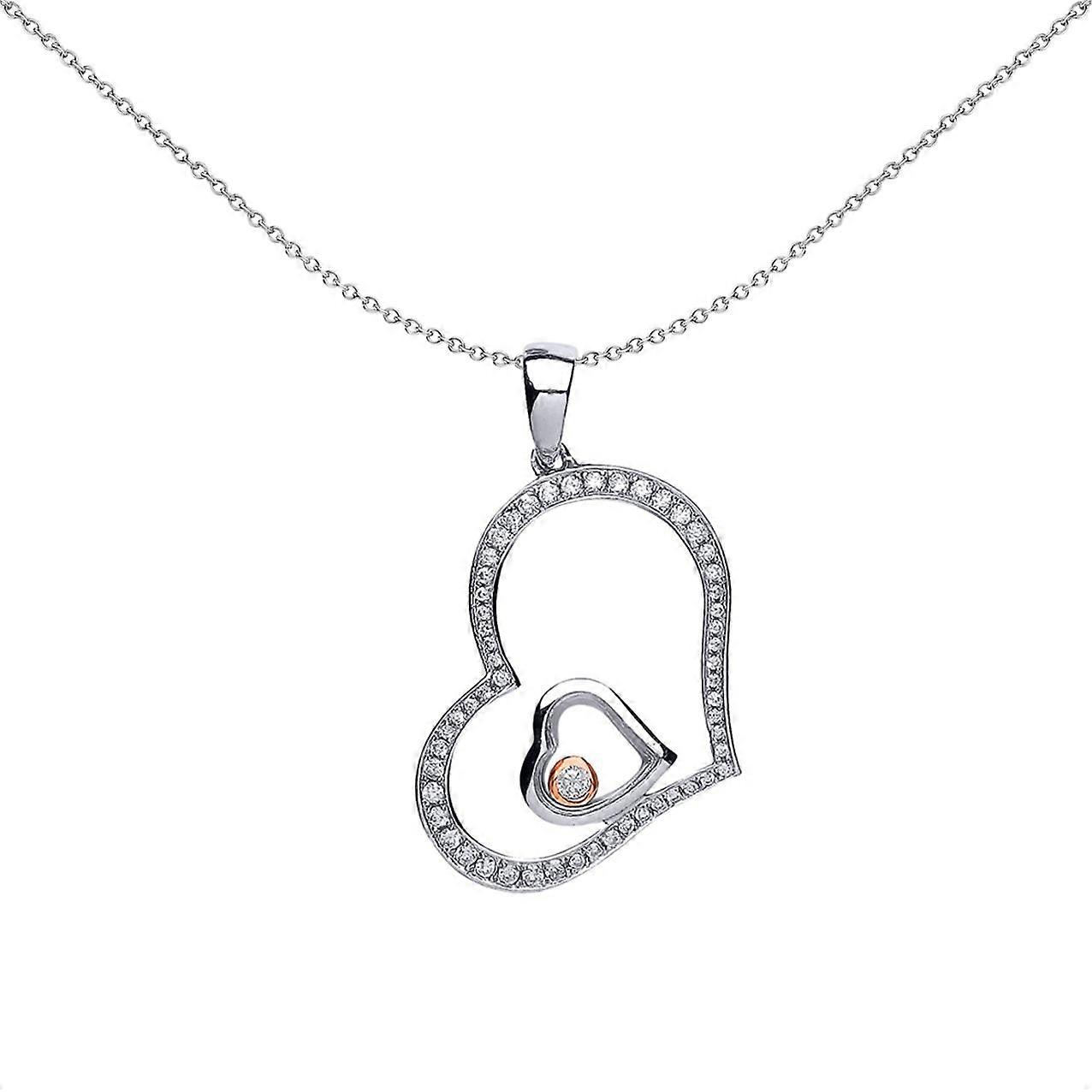 Jewelco London White and Rose Gold-Plated Sterling Silver Cubic Zirconia Floating Stone Heart Pendant Necklace 18 inch