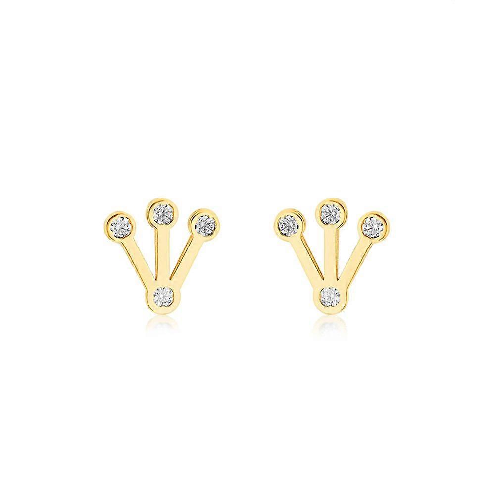 Jewelco London presents this piece from its latest collection of jewellery, a pair of women's stud earrings made of 9ct gold in a triple spike crown design, set with white round cubic zirconia gemstones. approx dimensions: 8mm | Height: 8mm Width: 8mm Gauge: 1mm Weight: 0.4g GEMSTONE: Cubic Zirconia, Round, White, 1.5mm, Simulated SKU: 1-59-1891