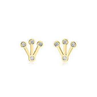 Jewelco London Women's 9ct Gold White Round Brilliant Cubic Zirconia Triple Spike Crown Stud Earrings, 8mm
