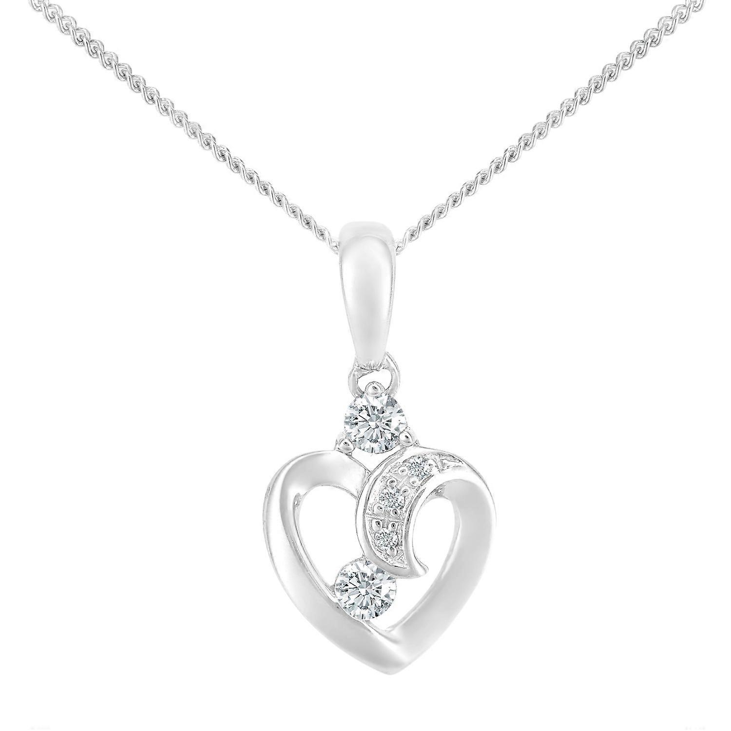 Jewelco London 18ct White Gold Round 10pts Diamond 1pts Heart Pendant Necklace 18 inch 46cm