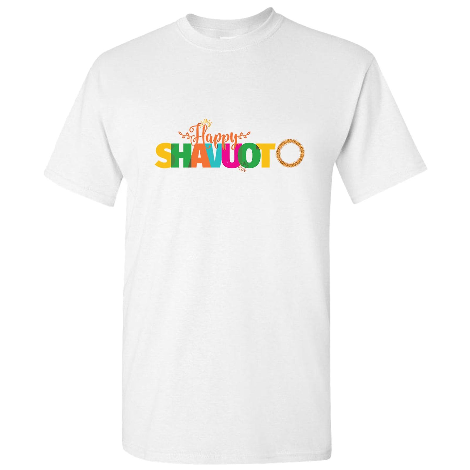Jewish Happy Shavuot Festival Colourful Text White Men T Shirt Tee Top