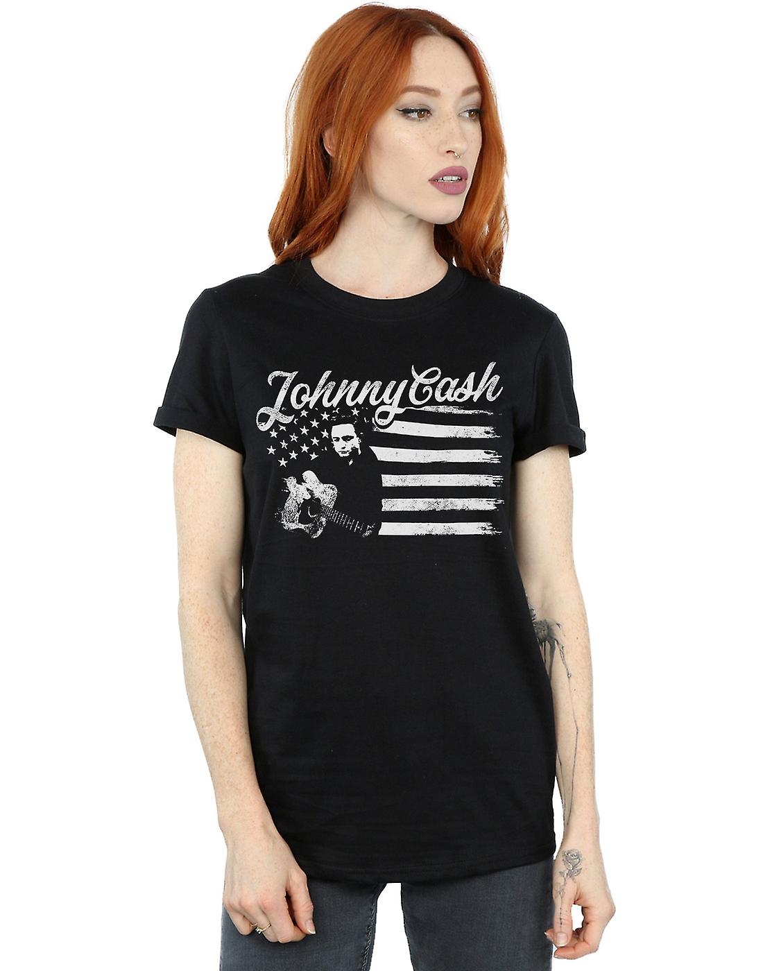 Johnny Cash Women's Flag Stripes Boyfriend Fit T-Shirt