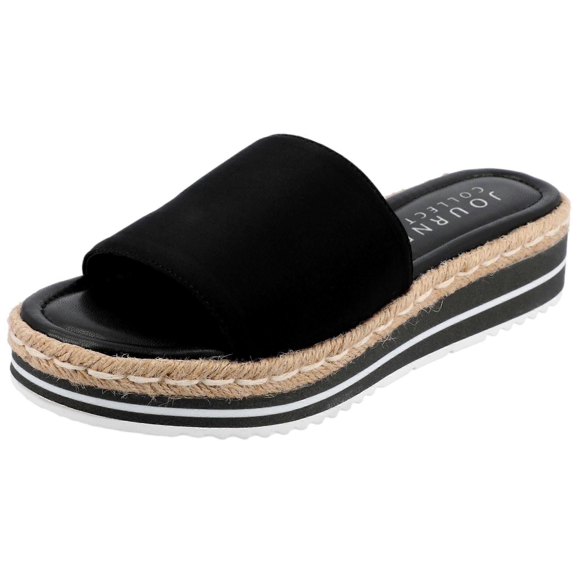 Journee Collection Rosey Platform Slide Black ROSEY-BLK Women's