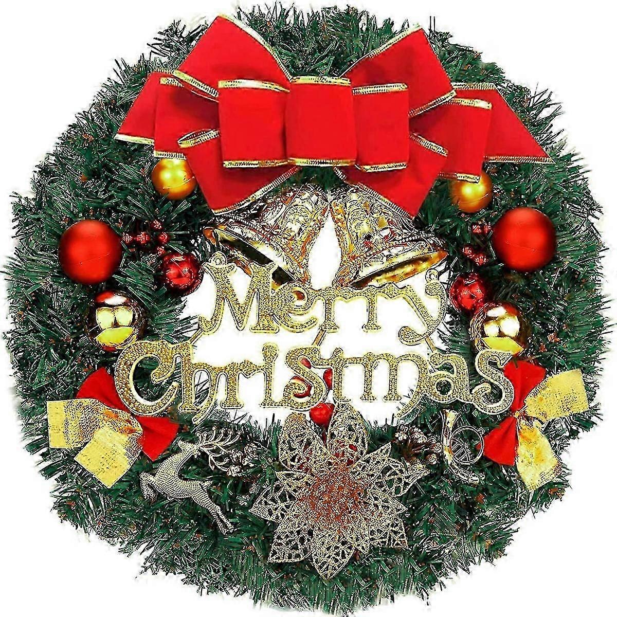 Christmas Wreath Door 35cm Christmas Garland Christmas Tree Decoration with Merry Christmas Bowknot Jingle,for Wall Fireplace