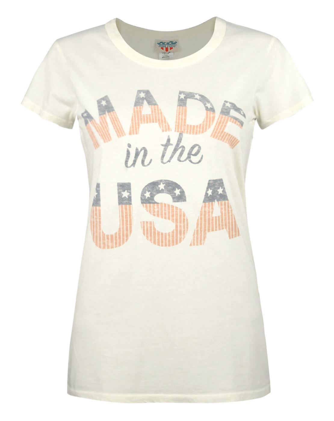Junk Food Clothing Womens Short Sleeved T-Shirt White Stars And Stripes Made In The Usa Print