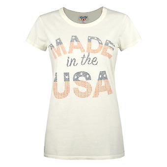 Junk Food Clothing Womens Short Sleeved T-Shirt White Stars And Stripes Made In The Usa Print