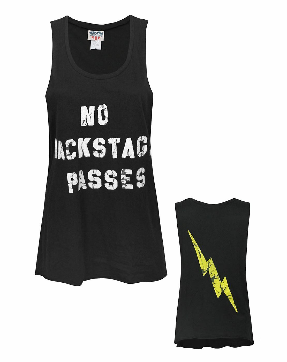 Junk Food Clothing Womens Vest Black No Backstage Passes Text