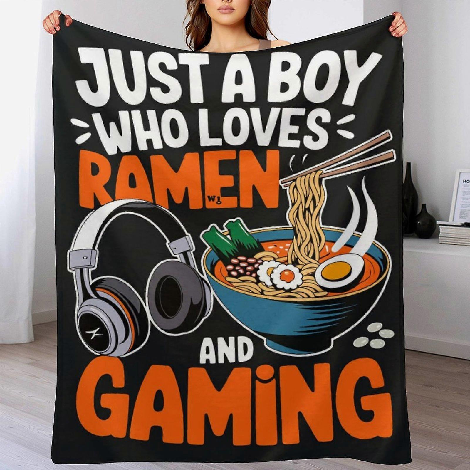 "JUST A BOY WHO LOVES RAMEN AND GAMING" Graphic Print Flannel Blanket - Soft Cozy Throw, 50x60 Inch, Food/Gaming Fan Gift (Bed/Gaming Room)