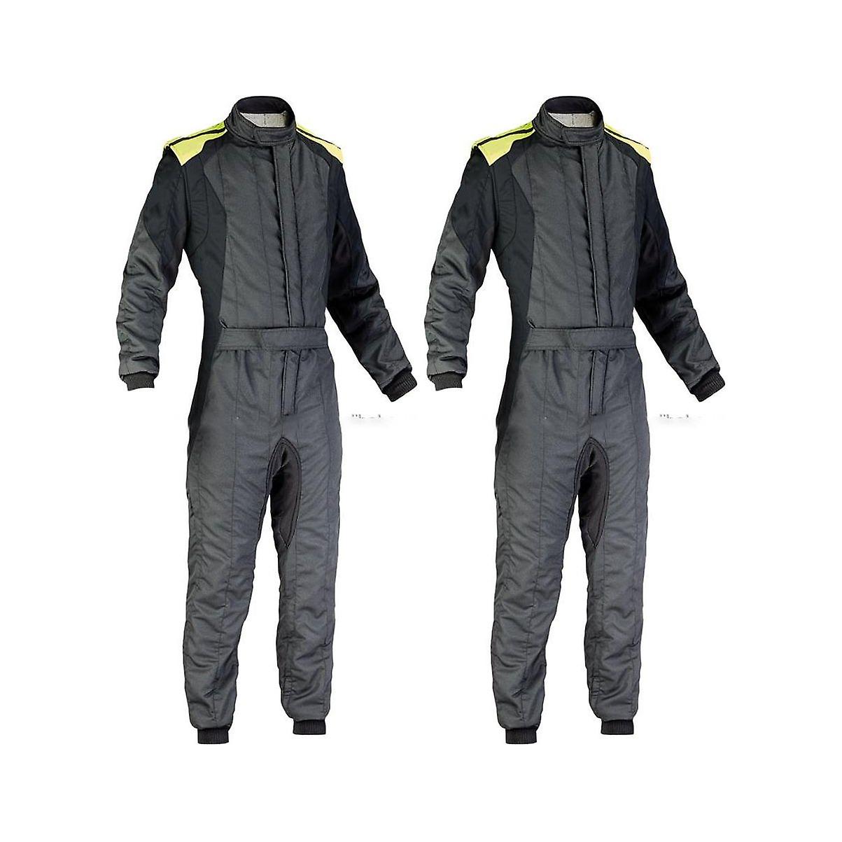 Two Layer One-Piece Suit — Our suit insulates you from the wind, offers more freedom of movement, and protects your body from injury better than other suits Outside Layer Cordura Polyester and Inside Polyester Mesh — These are light breathable fabrics that will keep you cool and dry throughout the race. Fully Floating shoulder gusset construction with Flexible material — Improve your range and position yourself to stay ahead of the competition. Have the agility you need to win with speed and with grace. Abrasion Resistant — Engineered for the best in abrasion resistance, moisture-wicking and flexibility. Fine and soft collar with Velcro — A soft collar with Velcro at the neckline is comfortable, won't interfere with your driving and keep you stay cool. Elasticated Cuffs — No more lumps and bumps. Specifically designed high-cut collar and cuffs with light material to keep air circulating around the overall suit to keep you cool while karting. Elastic on the back — Compress your every inch, cutting wind drag and keeping you in a position of power longer. You go faster, win races, and look smarter. Front Two Pockets —  Two chest pockets for your gloves, cell phone and other small items. Manufactured to Highest Quality — Designed to withstand the high-impact race environment