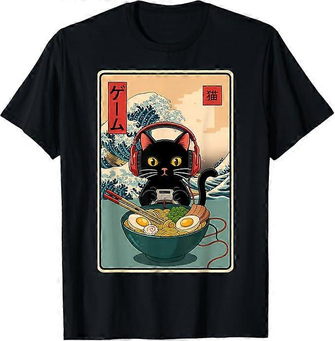 Kawaii Gamer Cat Ramen Retro Japanese Funny Cat Gaming T-Shirt