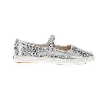 Keds Square Toe Mary Jane Silver Grey Distressed Metallic KW-SQMJ Women's