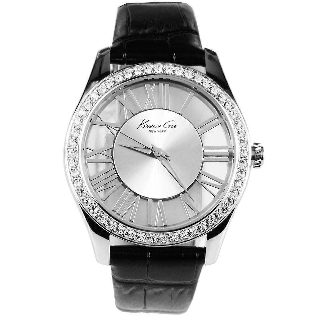 Ladies Kenneth Cole watch in a stylish model in stainless steel and leather. The silver dial has elegant Roman numerals set within a sparkling case border.