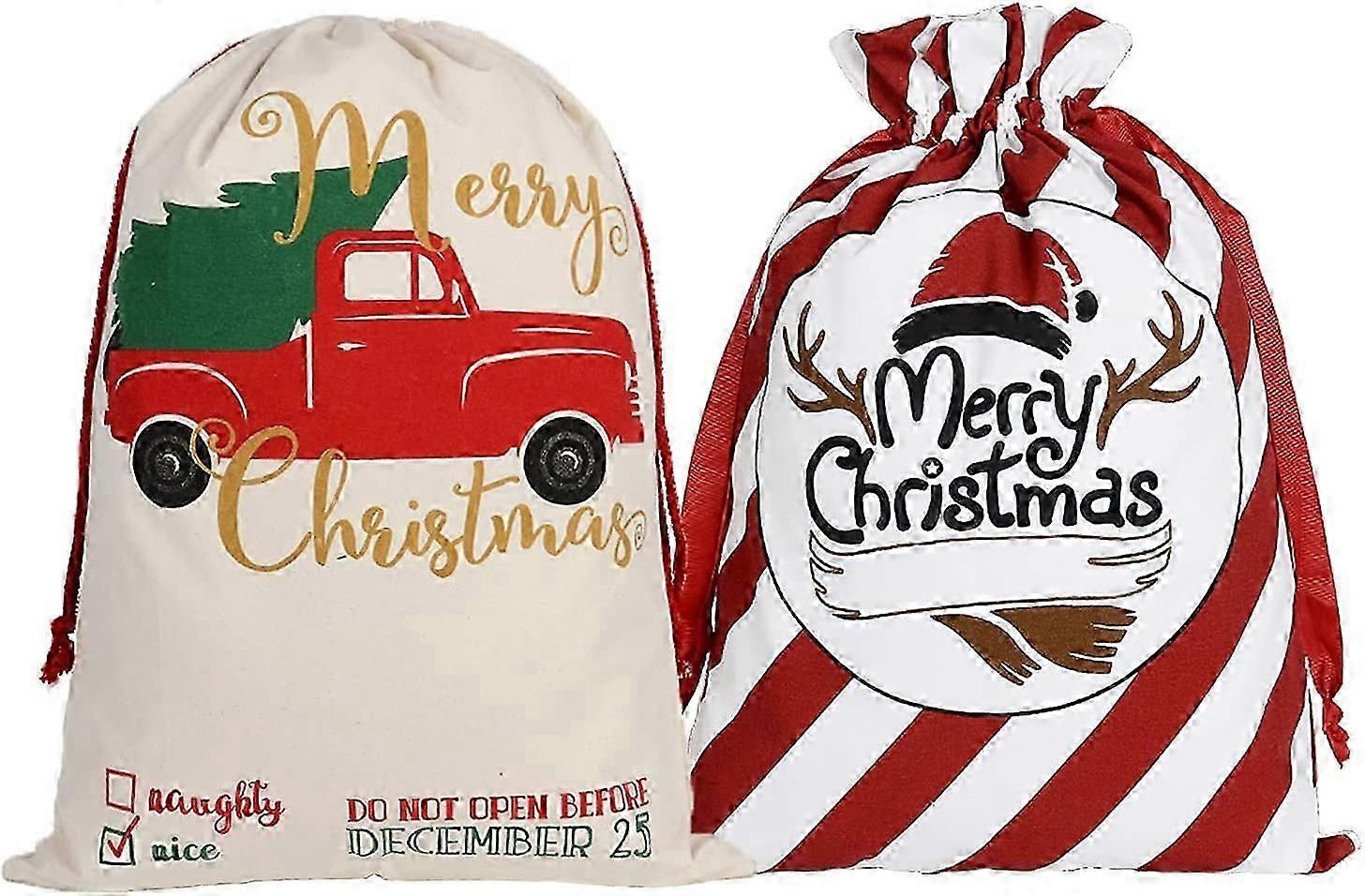 Christmas Gift Bag Drawstring Santa Christmas Bag Canvas Bag - Santa & Gifts, 2 Pack