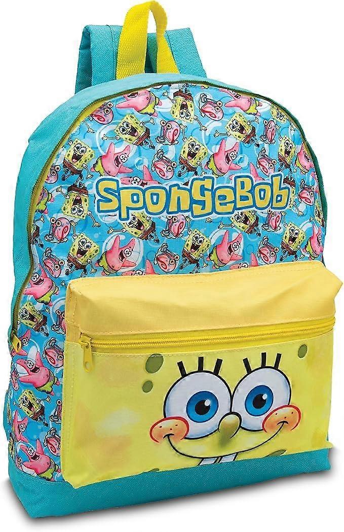 OFFICIALLY LICENSED DESIGN:Officially licensed SpongeBob SquarePants backpack featuring a vibrant all-over character print and fun front pocket face design. Created to meet licensing standards, this eye-catching rucksack brings authentic cartoon style kids will love, making it ideal for school, nursery, day trips or everyday adventures with a trusted branded look.COMFORTABLE AND KID-FRIENDLY:Designed with children in mind, this lightweight rucksack includes padded adjustable shoulder straps and a top carry handle for easy lifting. The comfortable fit helps reduce strain on little shoulders, making it suitable for daily use at school, travel days, clubs or sleepovers.DURABLE POLYESTER MATERIAL:Made from 100% polyester (excluding trims), this backpack offers durability for everyday wear and tear. The hard-wearing fabric is easy to wipe clean and designed to handle busy school routines, outdoor activities and regular use while maintaining its bright colours.PRACTICAL STORAGE AND FUNCTIONALITY:Features a spacious main compartment for books, lunch boxes and essentials, plus a large zip-up front pocket for quick-access items. Secure zip closures help keep belongings safe, making this backpack practical for school supplies, snacks or travel essentials.SIZE COLOUR AND GIFT IDEA:Measures approximately 38cm (H) x 35cm (W) x 12cm (D), ideal for young SpongeBob fans. Finished in bright turquoise and yellow tones, it makes a fun and practical gift for birthdays, back-to-school, holidays or special occasions.