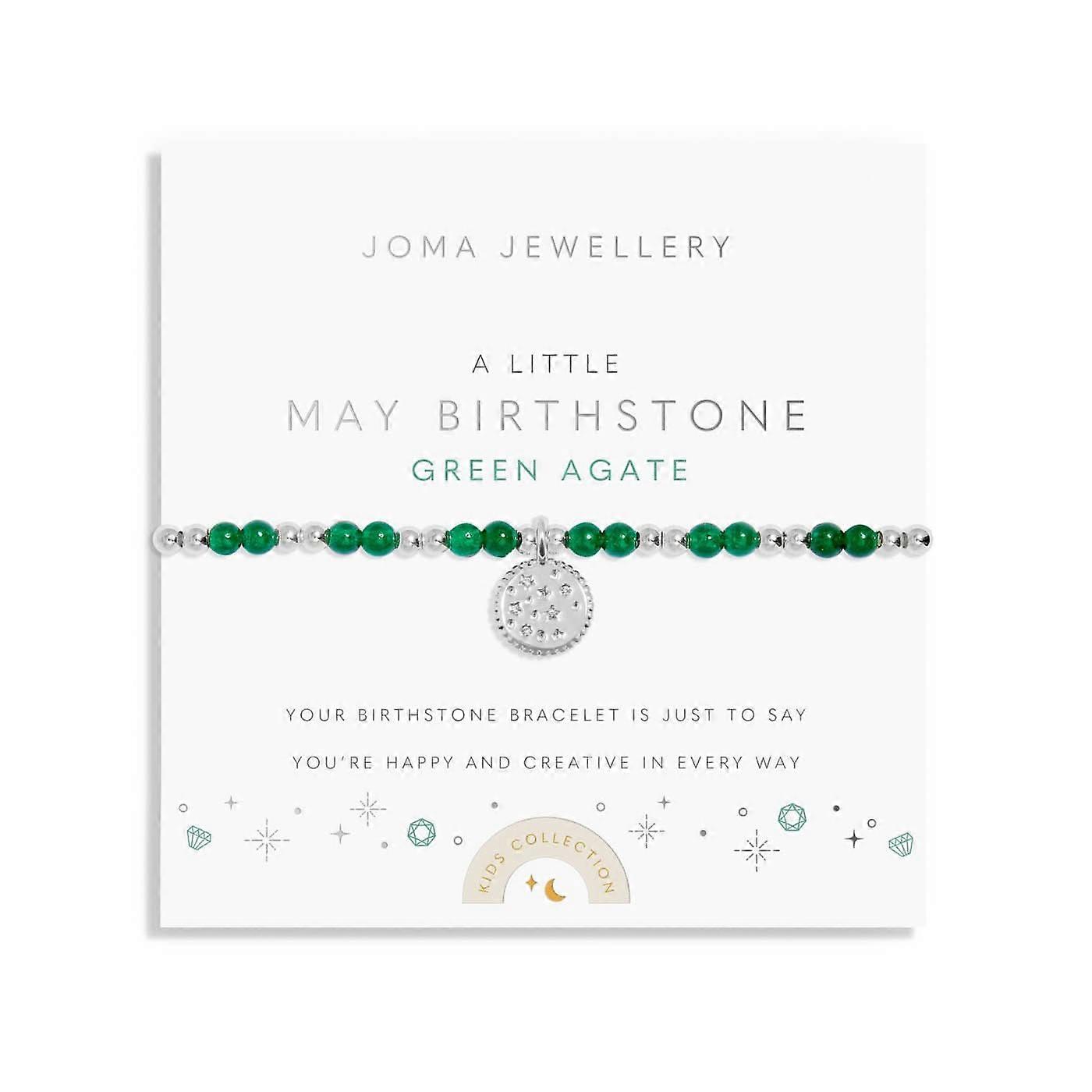 Kids A Little May Birthstone Silver Plated Bracelet C786Introducing the delightful Kids A Little May Birthstone Silver Plated Bracelet C786, a beautiful accessory crafted specifically for your little ones. This bracelet is not just a piece of jewelry; it's a celebration of their uniqueness and creativity. Designed with care and elegance, it adds a touch of luxury to everyday outfits or special occasions.The Kids A Little May Birthstone Bracelet features enchanting green agate gemstones, symbolizing growth, renewal, and positive energy. The stunning silver-plated disc charm twinkles gracefully, capturing the light and the imagination of your child. This bracelet is more than just a fashionable addition; it delivers a heartfelt message wrapped in a lovely poem, making it an unforgettable gift.This bracelet comes in a convenient stretch design, measuring 15.5 cm, accommodating smaller wrists effortlessly. It provides a perfect fit, ensuring comfort for every child, whether they wear it at home or during outings. The breathable design also makes it easy for children to put on and take off, promoting independence. Perfect Gift Option: Ideal for birthdays, holidays, or any special occasion, this bracelet will bring joy to every child who receives it. Eco-friendly Packaging: Each bracelet is thoughtfully wrapped in free recyclable packaging, promoting a sustainable future. This magnificent bracelet not only reflects luxury but also conveys a deeper meaning. With a commitment to quality, we offer a 1-year guarantee, ensuring that your purchase is protected. Treat your child to something extraordinary with the Kids A Little May Birthstone Silver Plated Bracelet C786, a perfect blend of elegance and personal sentiment that will be cherished for years to come.Acotis Diamonds offers a wide range of meticulously crafted pieces that blend timeless elegance with modern style, perfect for any occasion. Our dedication to quality ensures that every item is not only luxurious but also responsibly made, using ethically sourced materials. Whether you're buying for yourself or a loved one, you can wear your jewellery with pride, knowing it represents both craftsmanship and sustainability.Each piece comes beautifully packaged in recyclable materials, showing a commitment to sustainability alongside luxury. Additionally, we stand by our products with a one-year guarantee, ensuring peace of mind with your purchase.