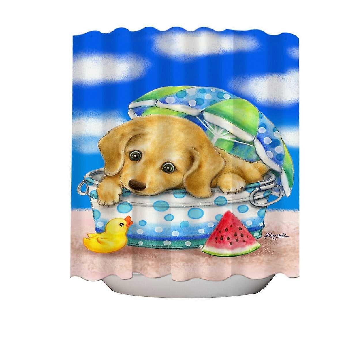 Kids Animal Dogs Art Cute Dachshund at the Beach Shower Curtain