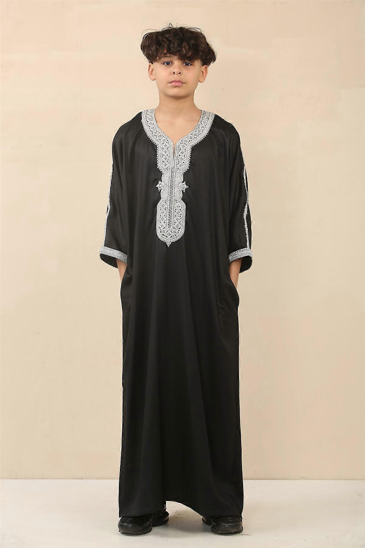 Kid's Boys Black Moroccan Thobe Jubba Robe Eid Djellaba Gandoura