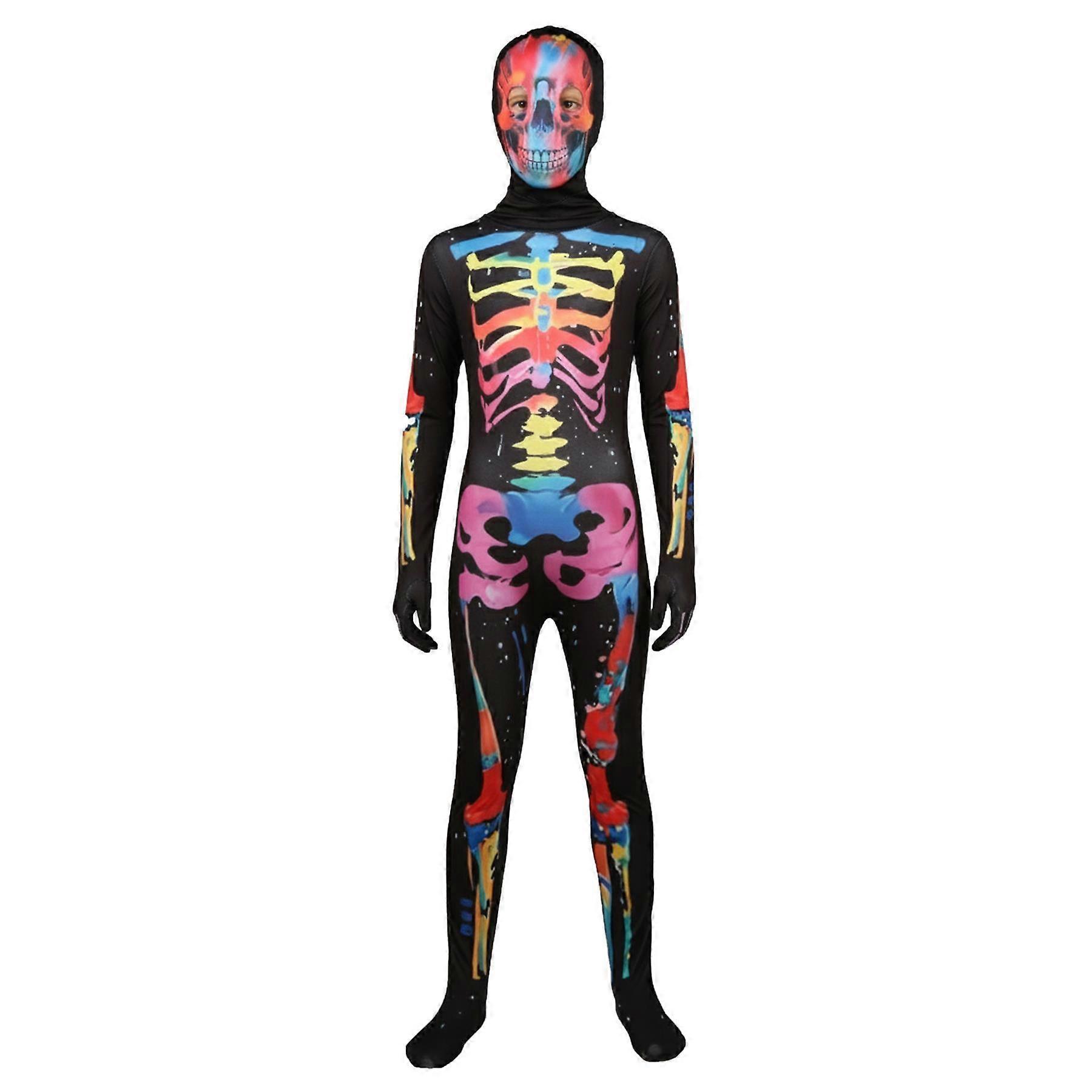 Kids Boys Girls Skeleton Glow Costume Skull Mask Halloween Fancy Dress One Piece