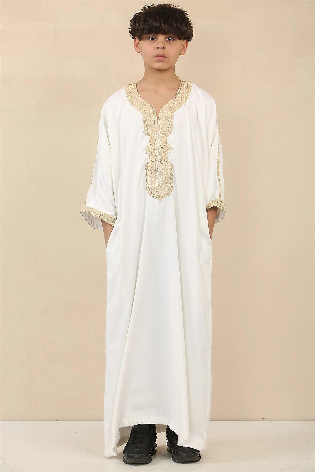 Kid's Boys White Moroccan Thobe Jubba Robe Eid Djellaba Gandoura