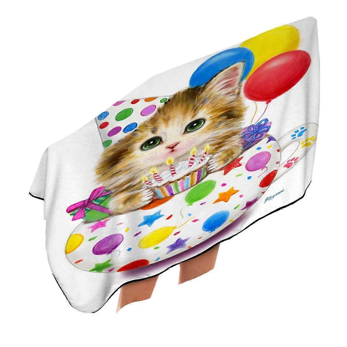 Kids Cat Art Drawings the Cute Cup Kitty Birthday Microfiber Beach Towel