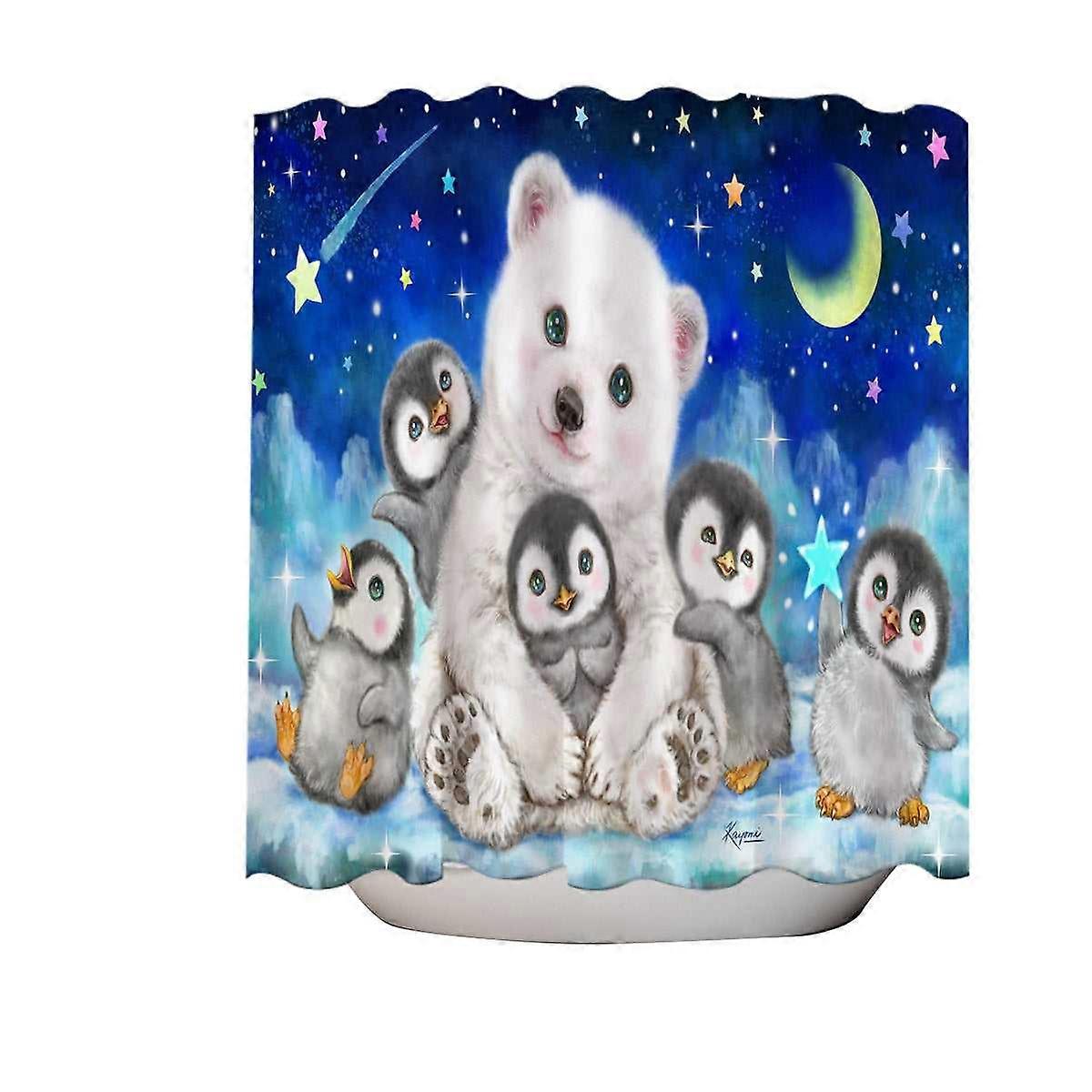 Kids Cute Animal Drawings Polar Bear and Penguins Shower Curtain