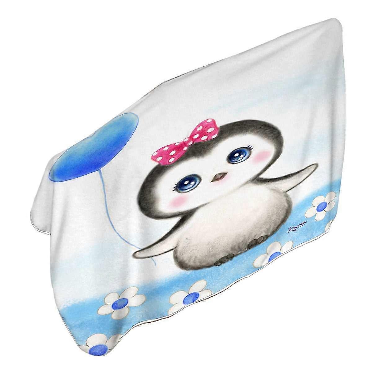 Kids Drawing Design Penguin Heart Balloon Microfiber Beach Towel