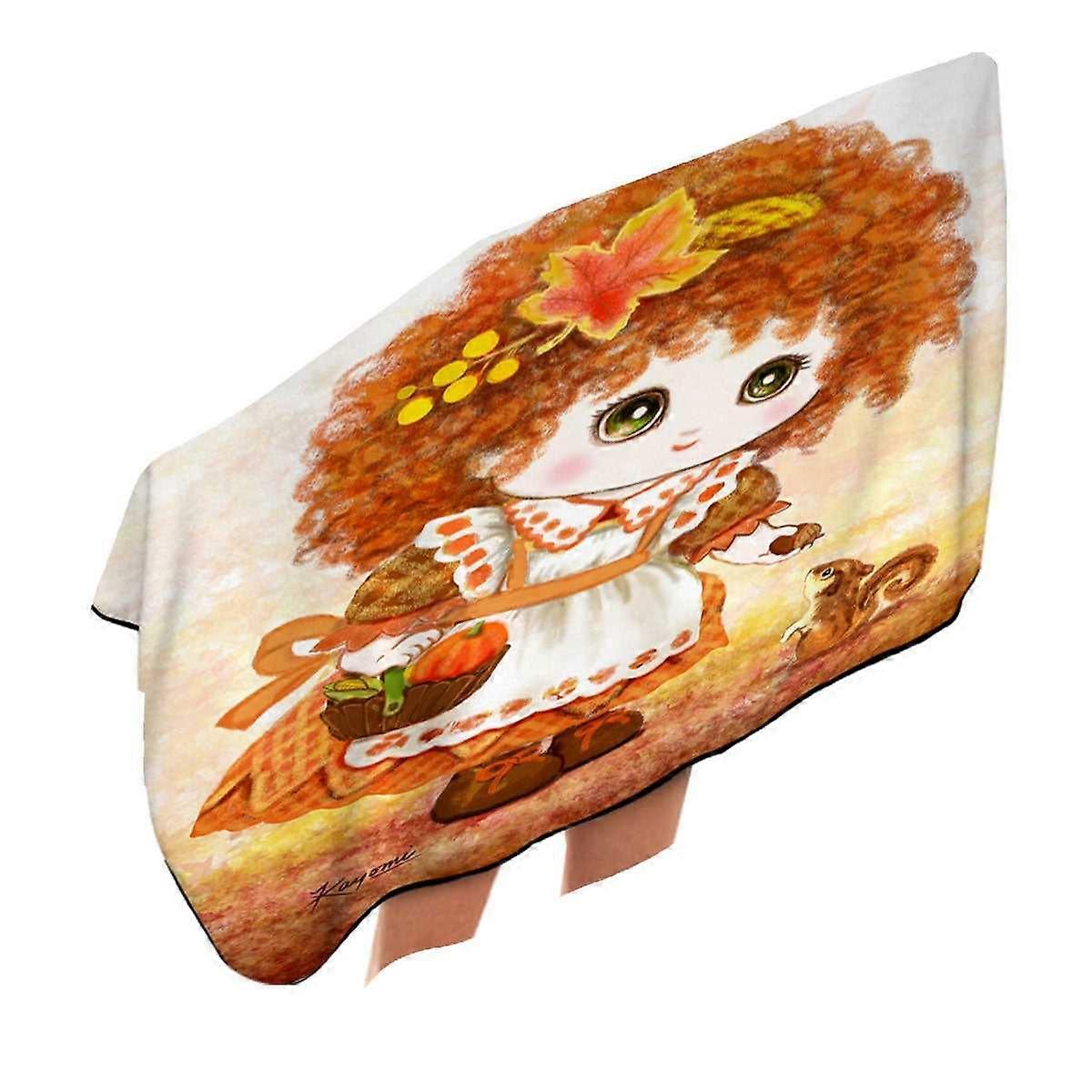 Kids Drawings Autumn Orange Girl and Squirrel Microfiber Beach Towel