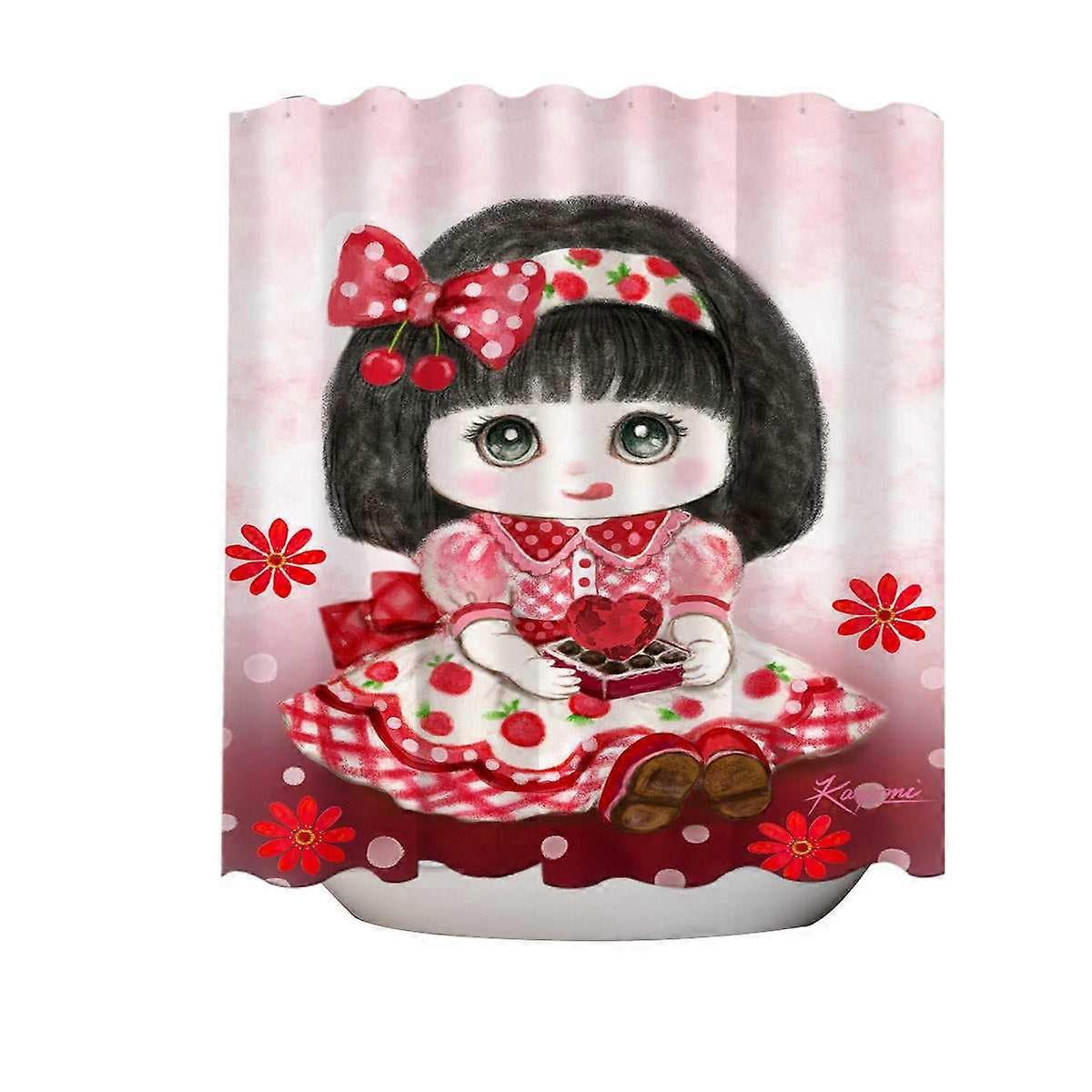 Kids Drawings Red Girl Heart and Flowers Shower Curtain
