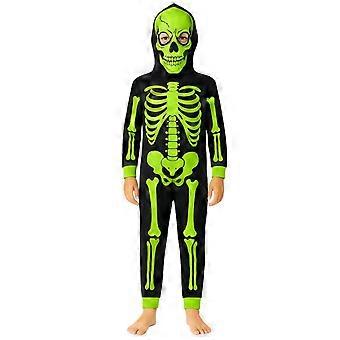 Kids Girls Boys Skeleton A2Z Onesie One Piece Neon Green Face Mask Halloween Fun